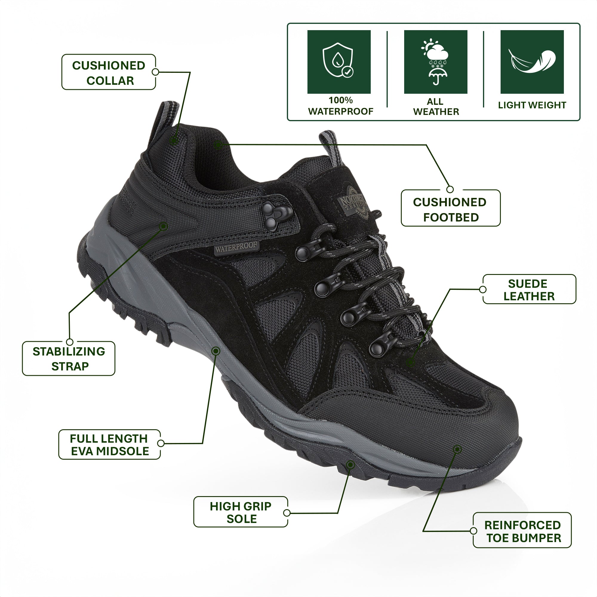 We have a huge collection of Mens Walking shoes at Northwest Territory, where comfort meets style. Our Waterproof & Walking shoes men's UK / Men's Waterproof Walking shoes are made of breathable material that keeps your feet dry all day, keeping you in comfort all day. Our mens Walking Shoes are made of lightweight material that helps you to roam around easily all day. Our shoes are not just made for walking, they are designed keeping in mind the latest modern styles. Check out our Northwest Territory Mens Walking shoes, which are made to keep you comfortable and stylish.