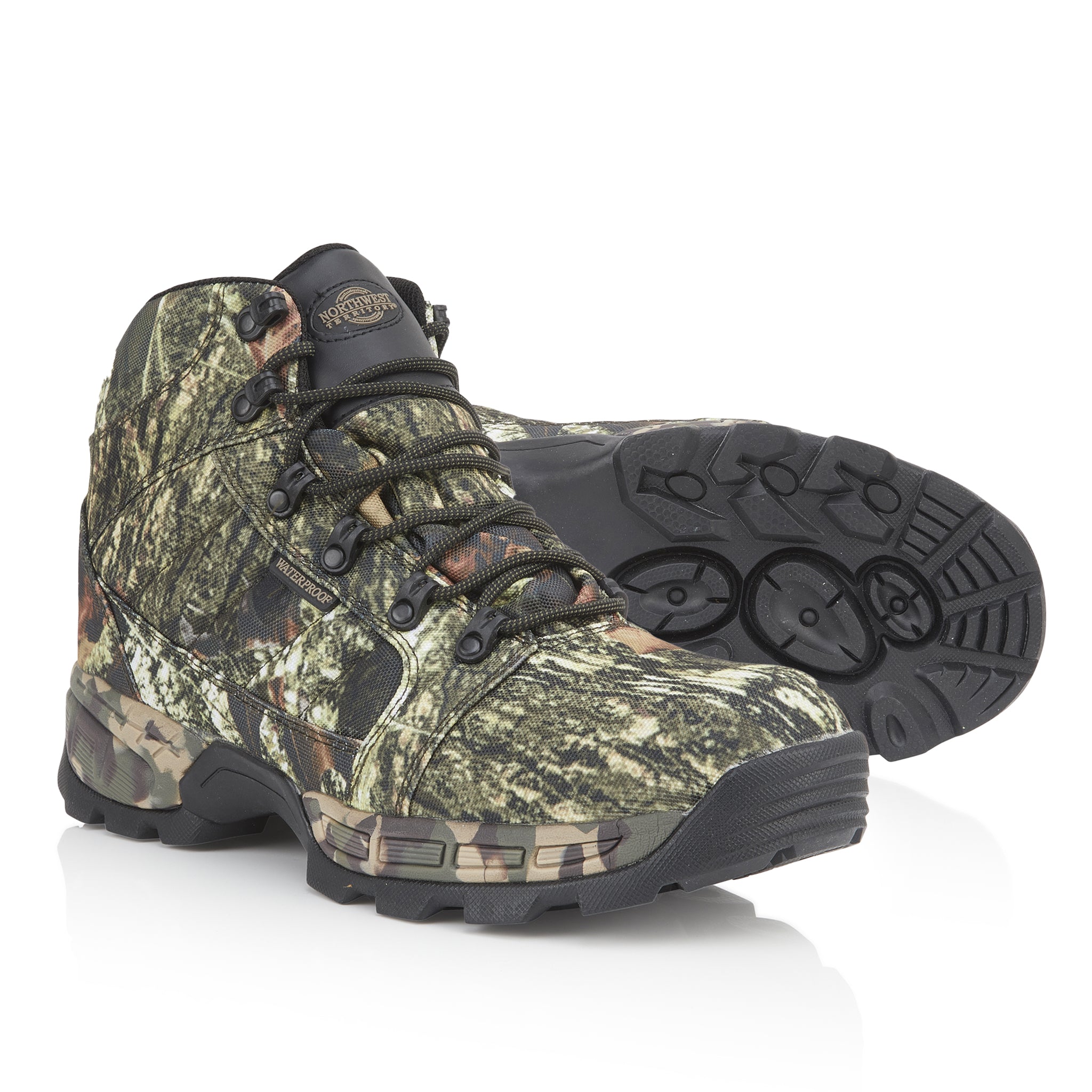 Take on the outdoors with confidence in the CAMO Mens Waterproof Walking Boots from Northwest Territory. Designed with a bold camouflage finish, this military-inspired tactical boot delivers reliable performance across all terrains while making a strong outdoor statement. Crafted with a fully vegan-friendly upper, this lightweight, durable, and breathable vegan hiking boot is built for all-day, all-weather comfort.