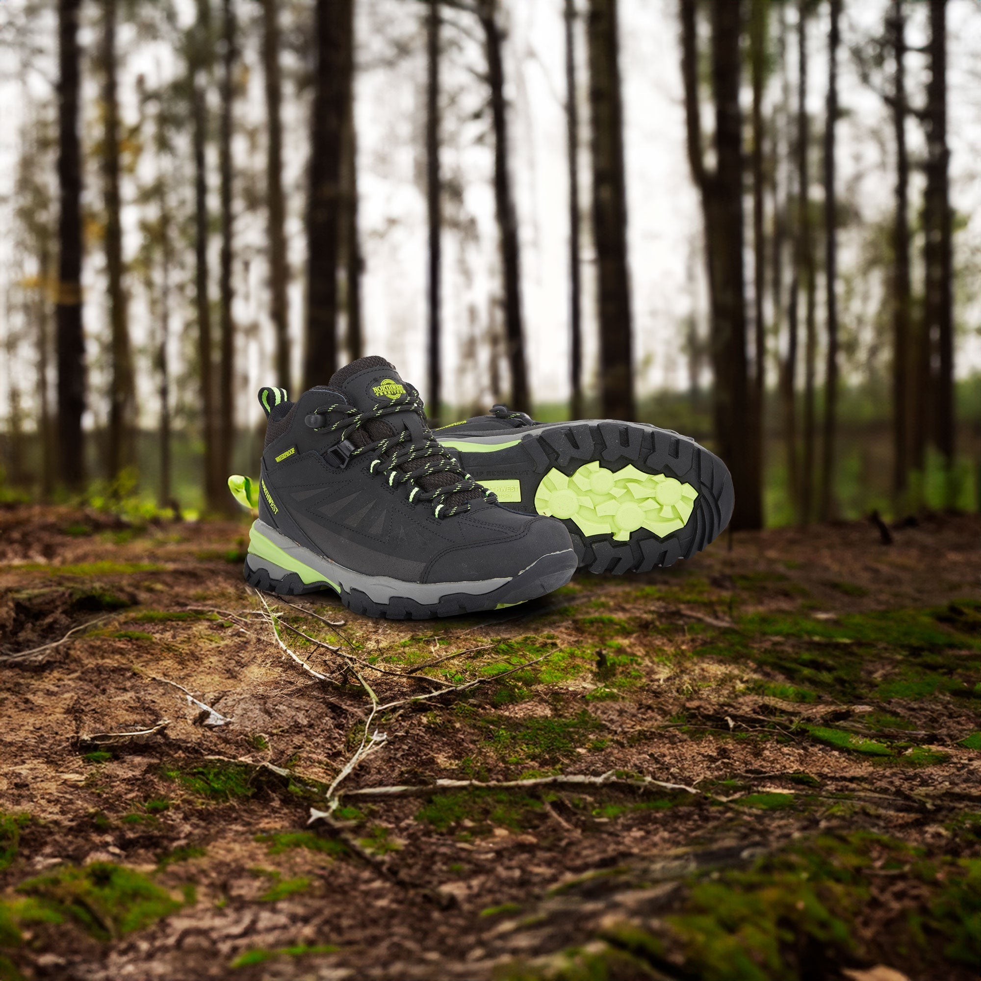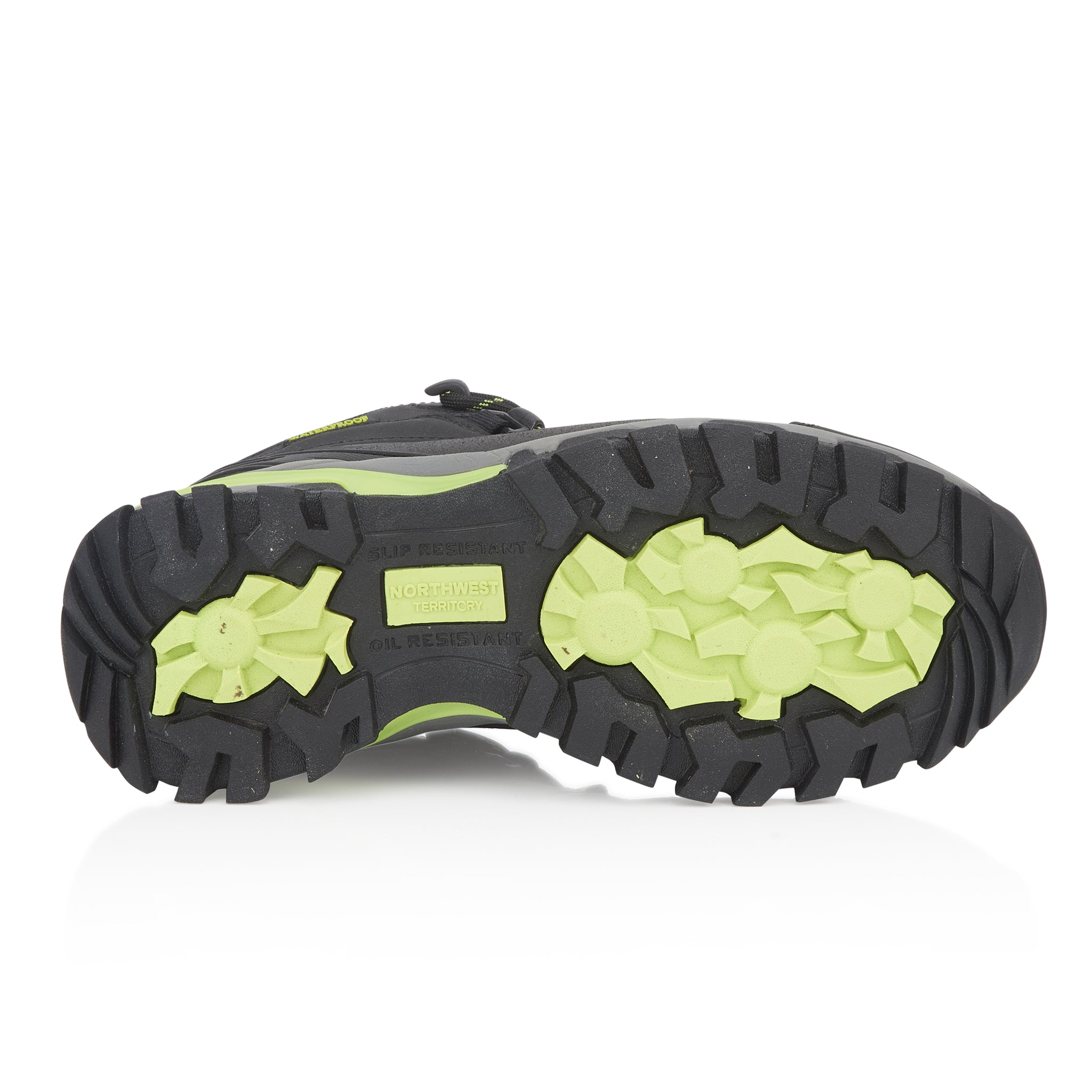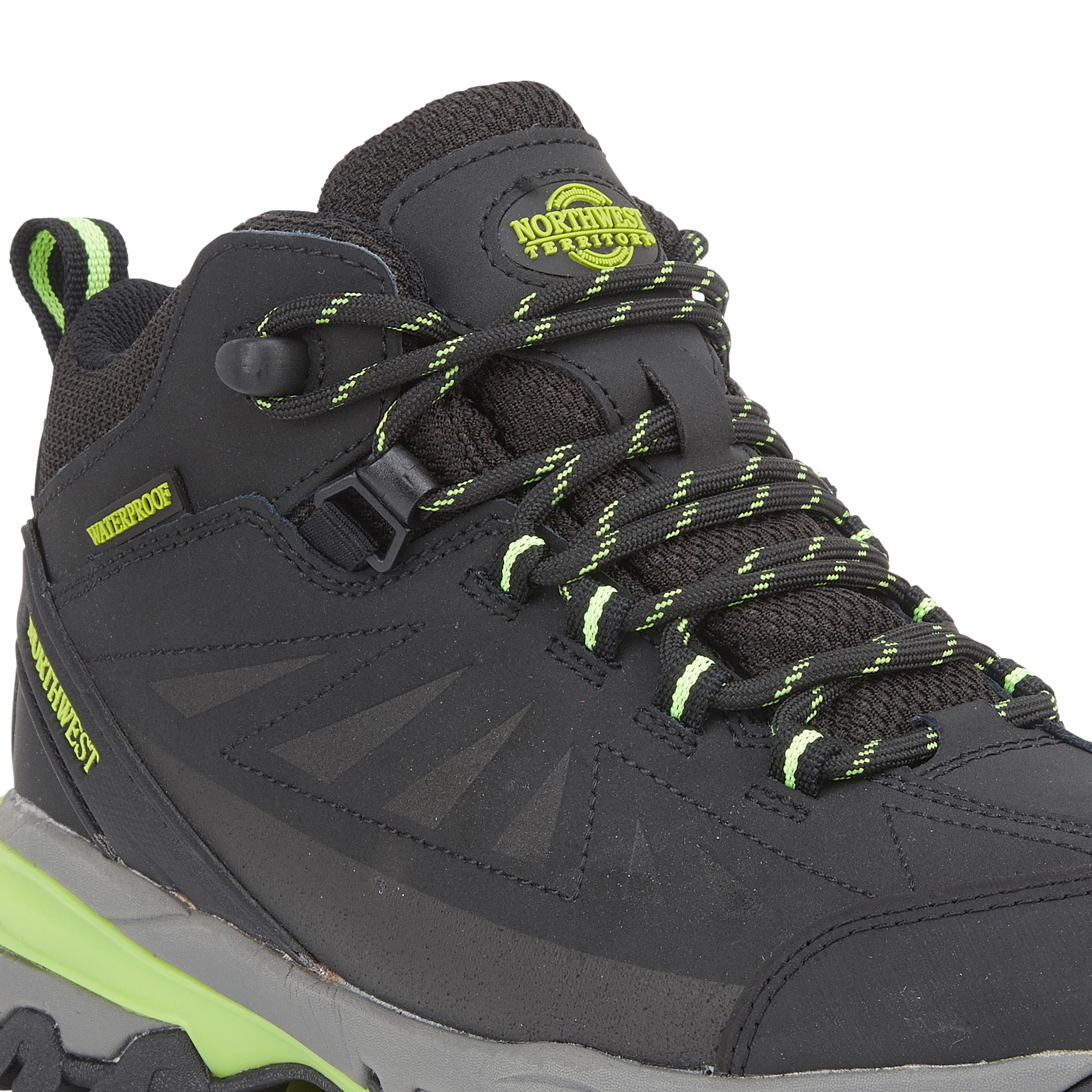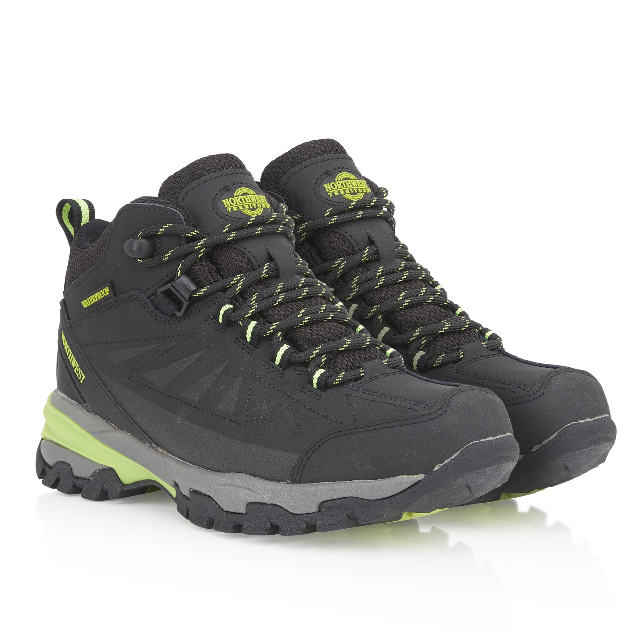 Introducing the Women's Black Lime KEELE HI Leather Mid NWTDRY boots from Northwest Territory, where classic lines, premium materials, and waterproof protection unite. These boots combine a proven bottom unit and chassis with an elegant upper to deliver a perfect balance of style and functionality. Designed for outdoor exploration, they provide stability, comfort, and durability. The soft nubuck leather upper is not only flexible but also fully waterproof, thanks to the NWTDRY lining. The seamless lining reduces the risk of hot spots and blisters, while the mid-height ankle support ensures a secure fit. The mid-cut design offers extra protection for your ankle, enhancing overall stability.