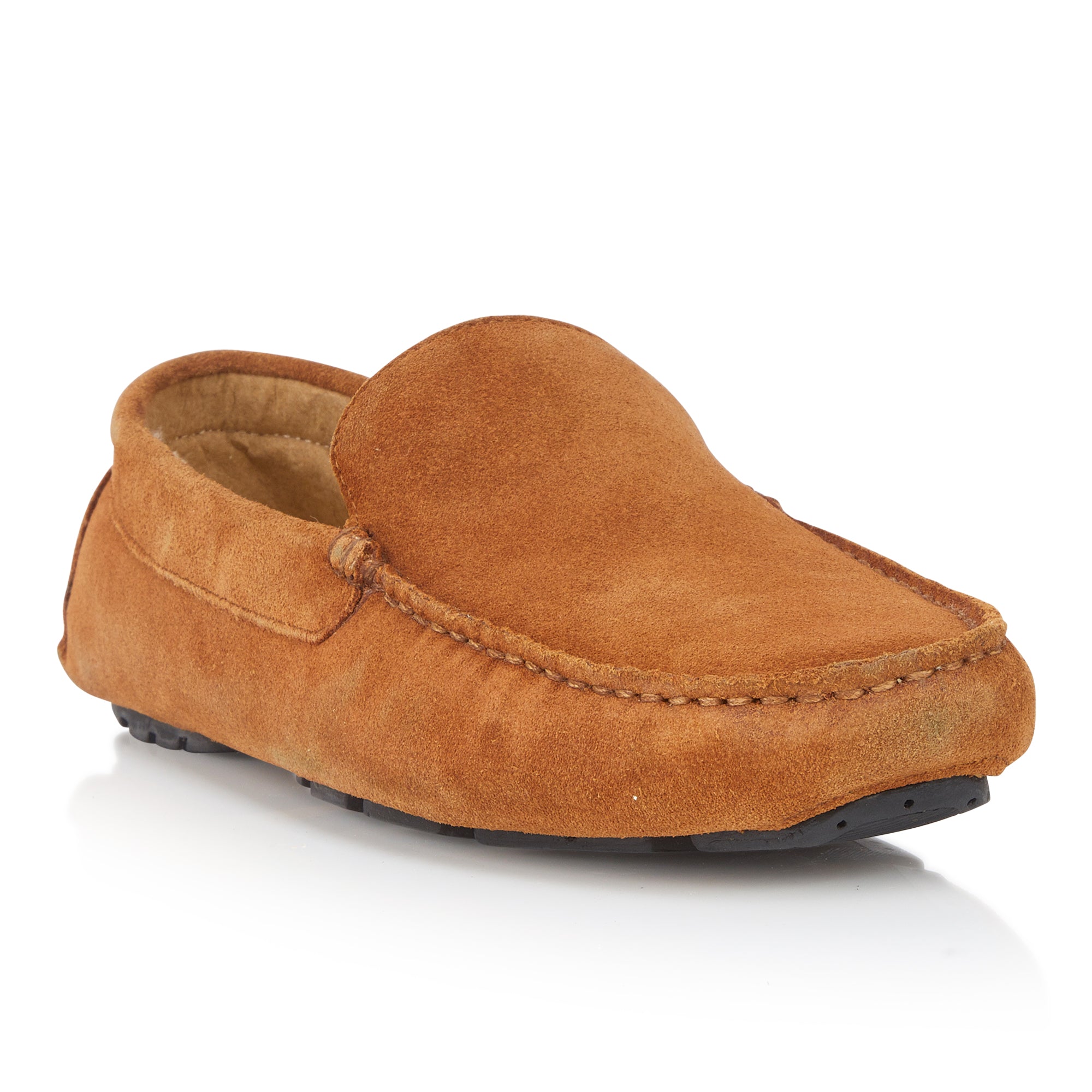 Step into style and comfort with LAWRENCE in Tan, the perfect pair of moccasin slippers that effortlessly blend fashion with relaxation. Crafted with a suede leather upper, a durable rubber sole, and a luxurious faux fur lining, these slippers offer both functionality and opulence. The subtle panels add a touch of flair, making LAWRENCE a stylish favourite for your feet. Whether you're dressing down at home or seeking a chic yet comfortable look, these moccasin slippers are the ideal choice.