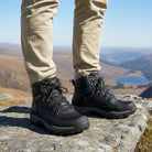 Prepare yourself for multi-day hill walks and trekking tours on challenging terrain with the remarkable black RAYROCK walking boots from Northwest Territory. These boots are specifically designed to provide outstanding comfort and traction. With a cushioning EVA midsole and a non-slip sole, you can confidently conquer various surfaces. The high-quality treated leather and two-zone lace system ensure a perfect fit that adapts to your needs. Experience reliable ankle support with the leather collar, especially when carrying a heavy backpack or traversing uneven ground. The RAYROCK boots are equipped with NWT HYDRY waterproof technology and a breathable performance Comfort Membrane, keeping your feet pleasantly dry in any weather condition, be it rain, snow, or mud. Gear up for the great outdoors with the ultimate combination of durability, protection, and comfort provided by the RAYROCK trekking boots.