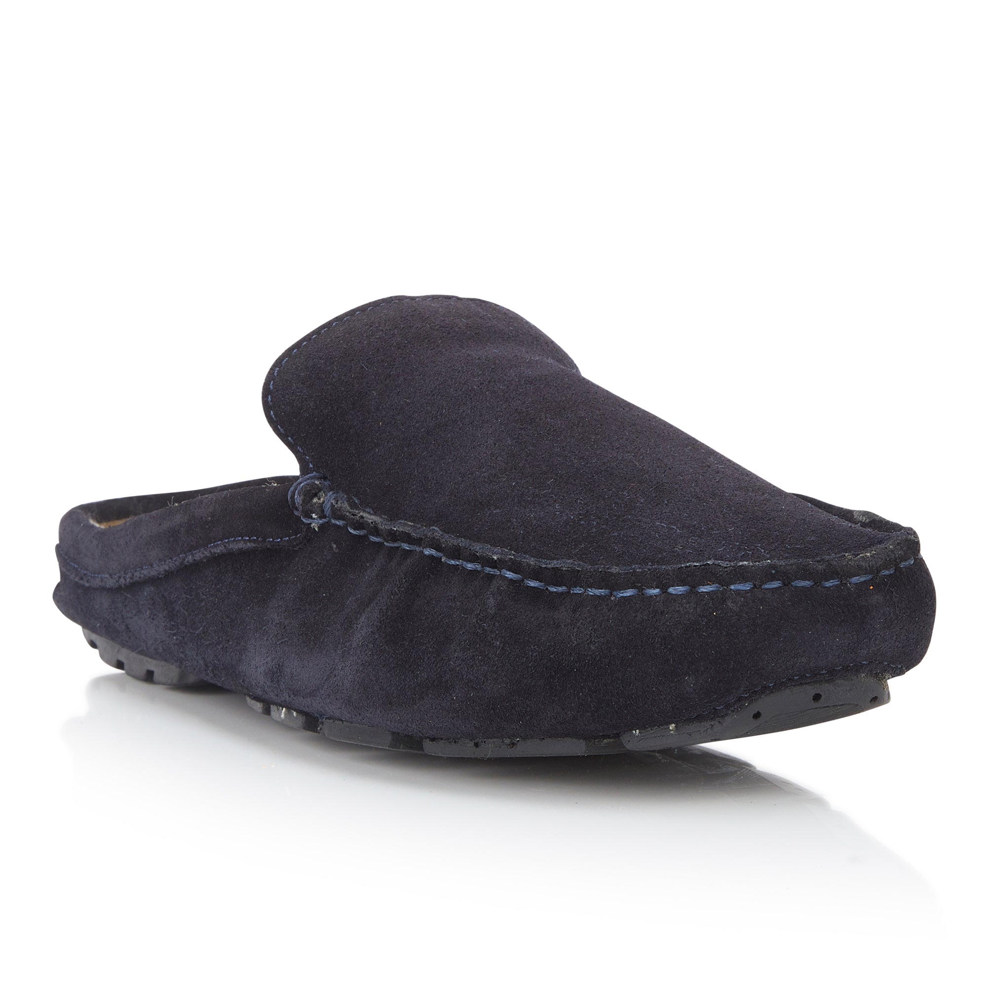 Keep your feet warm with the navy RUPERT slippers. Fashioned from sumptuous suede leather and adorned with a plush faux fur lining, these slippers are the epitome of comfort for cozy nights in. Their convenient slip-on style guarantees easy wearability, and the rubber sole offers both comfort and durability. Whether you're lounging indoors or stepping out for a quick errand, these slippers provide the perfect blend of style and practicality.
