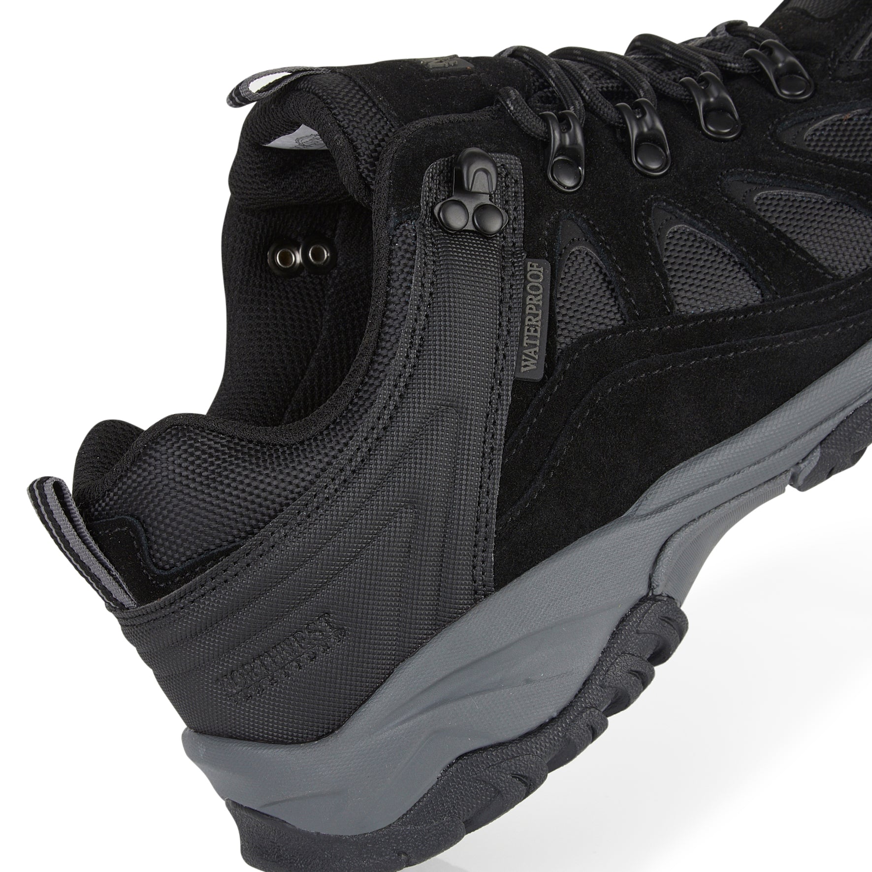 Discover reliable comfort and all-weather performance with the Steen Walking Shoes For Men by Northwest Territory, built for men who demand durability and lightweight support on every outdoor journey. Crafted with a suede leather upper, this men's black hiking shoes combines rugged functionality with a refined outdoor look.